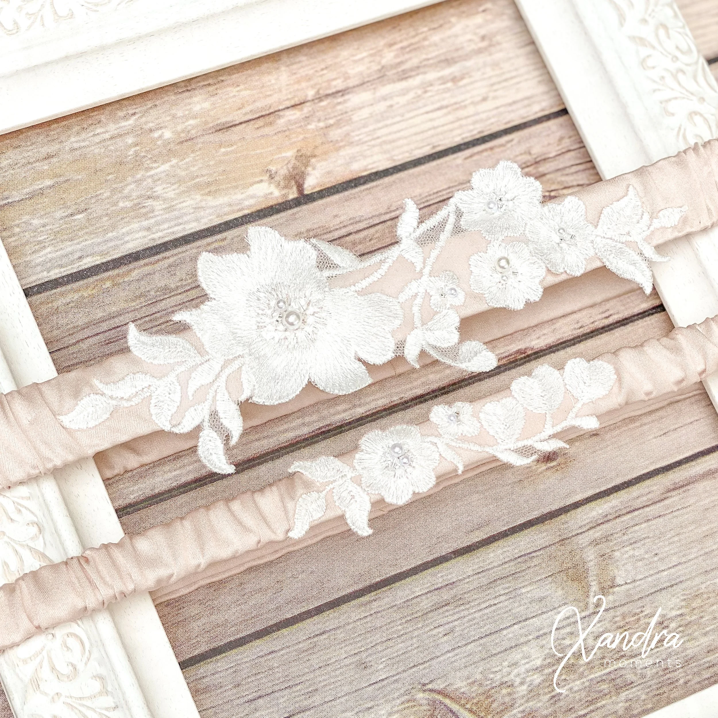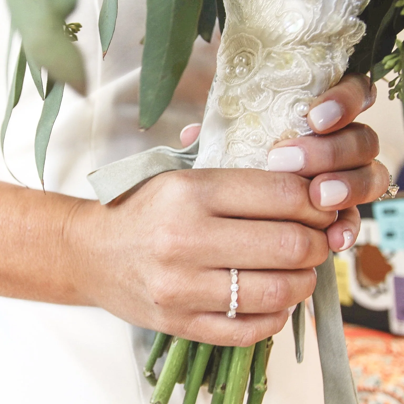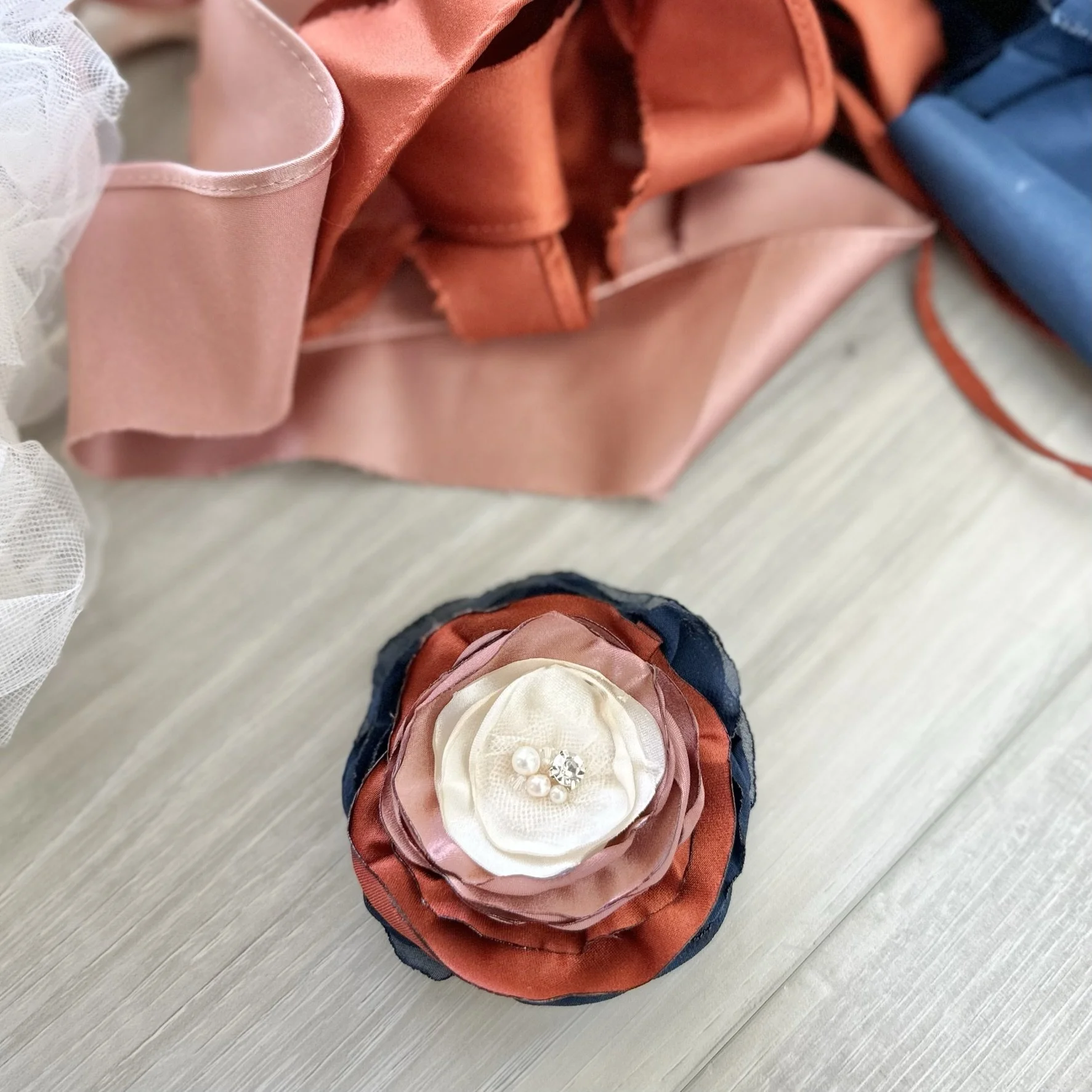 Adjustable from 4” to 12” diameter with our unique lace-up style. Add a pop of color by using your bridesmaid’s hem scraps for the lacing.
