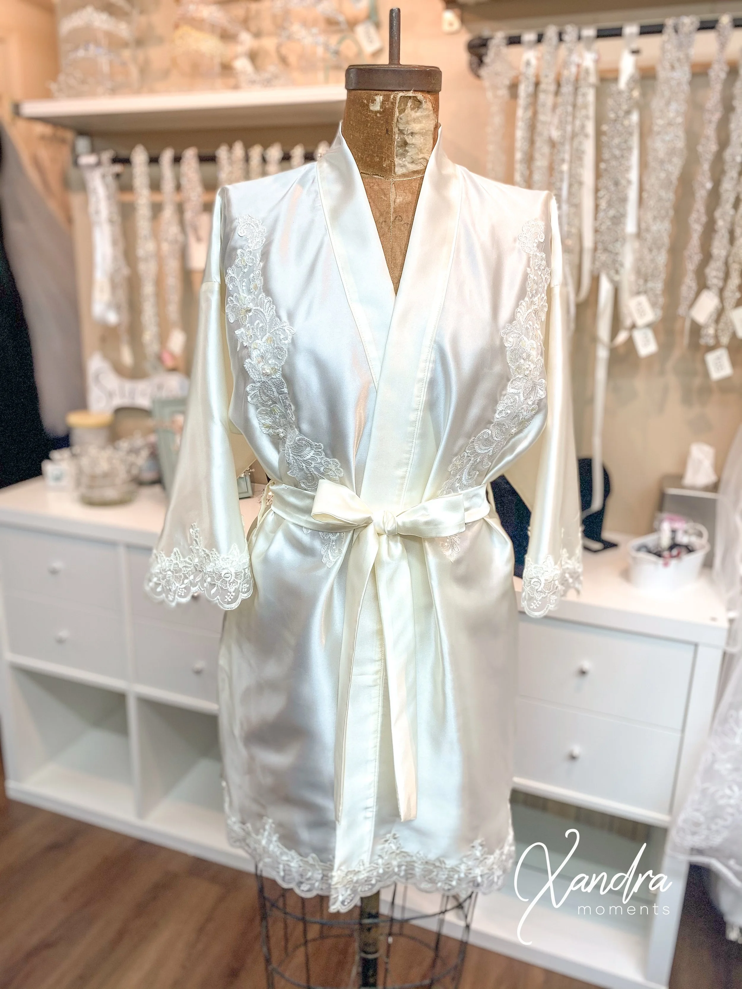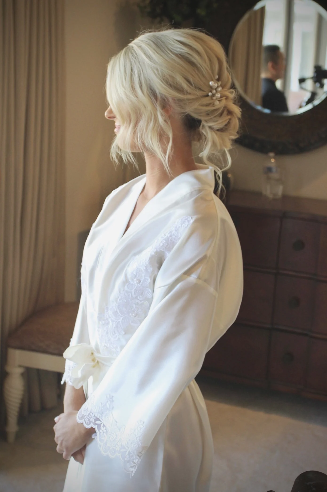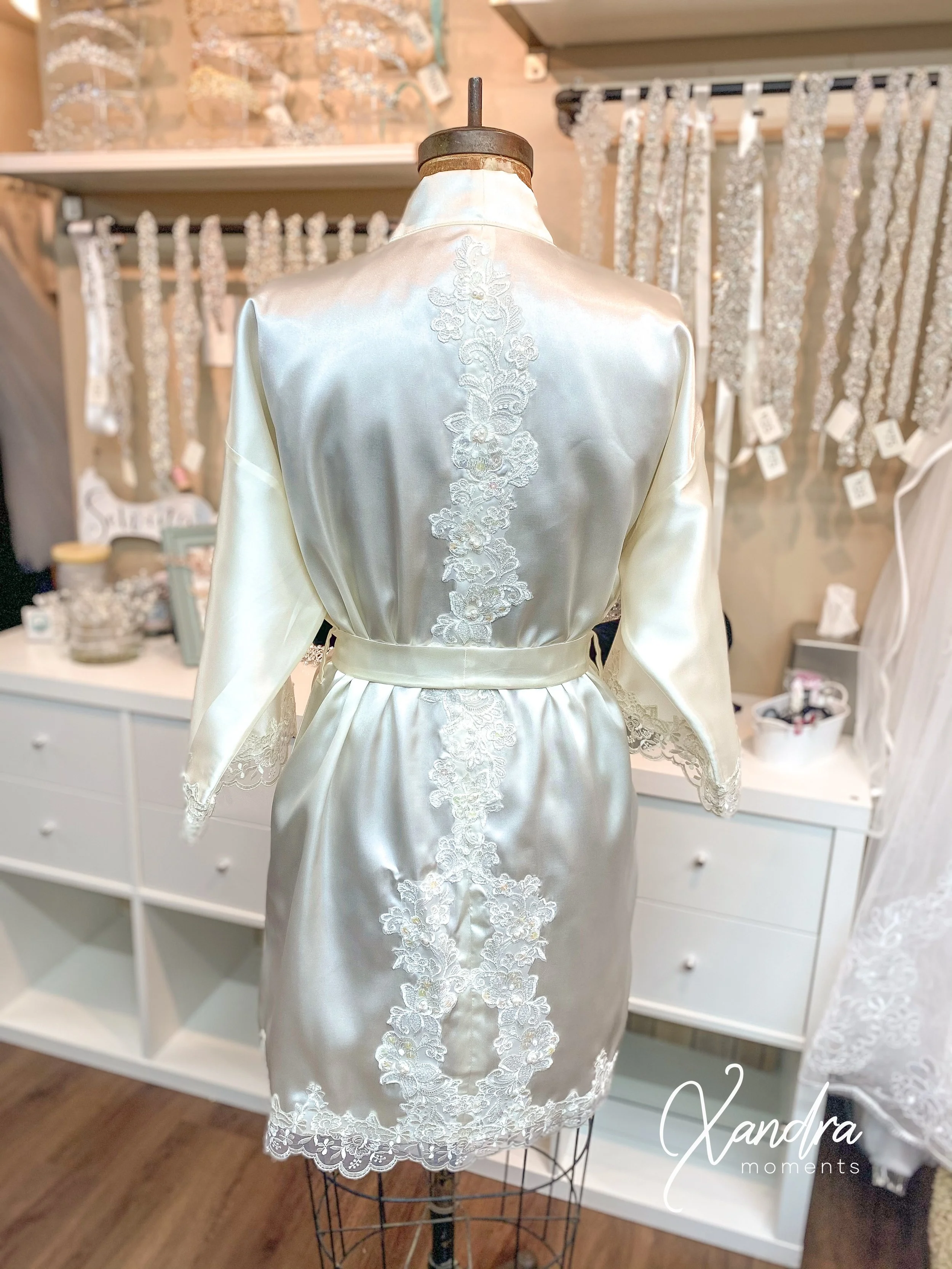 This Kimono-style robe is the perfect addition to your bridal wardrobe while you get ready to walk down the aisle! Such a beautiful and special way to honor mom.