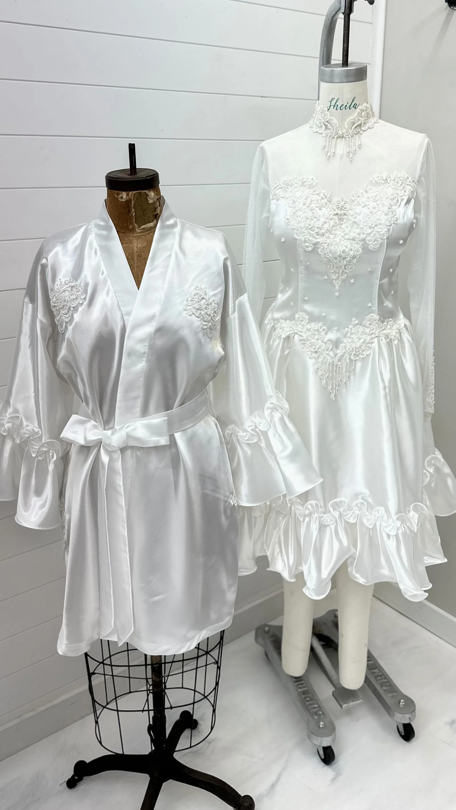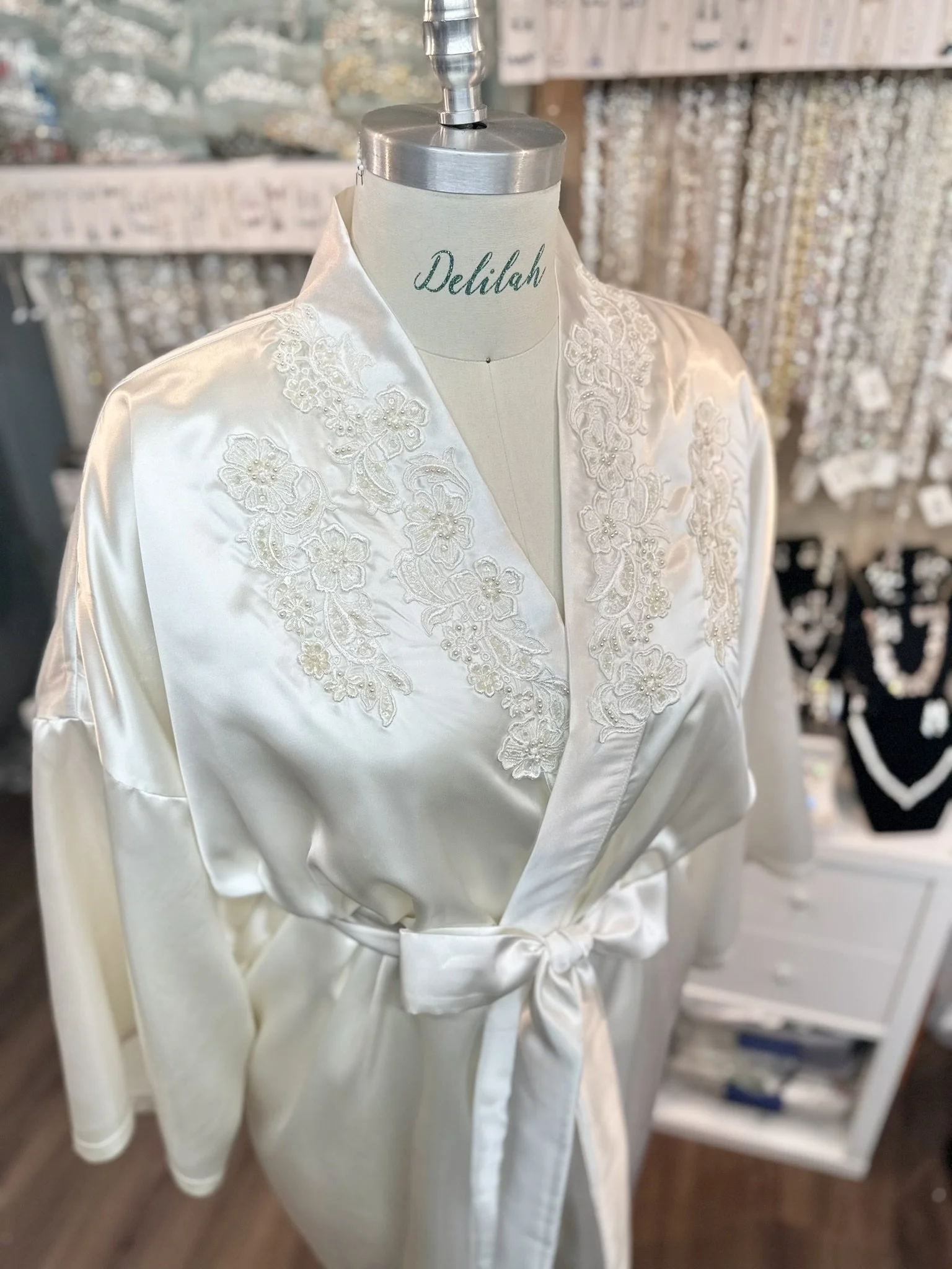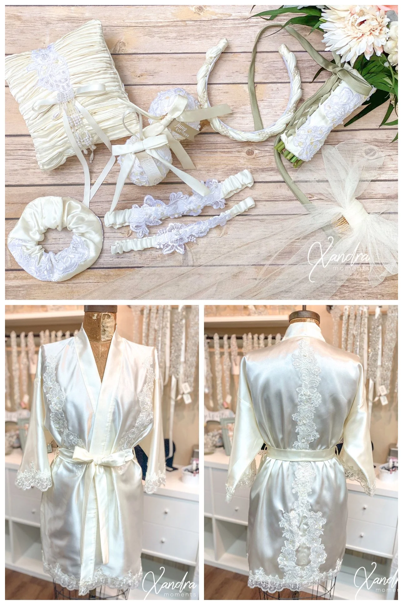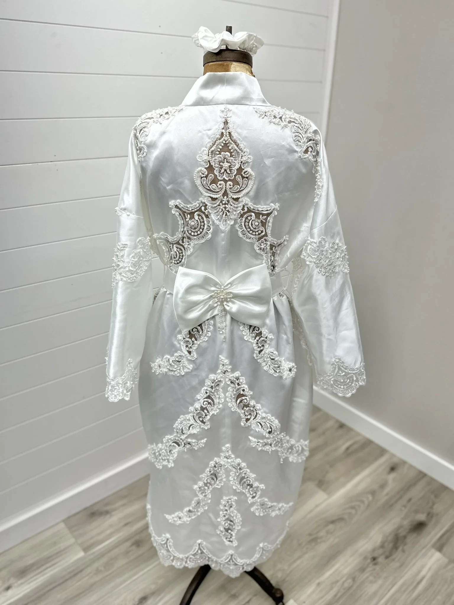 This Kimono-style robe is the perfect addition to your bridal wardrobe while you get ready to walk down the aisle! Such a beautiful and special way to honor mom.