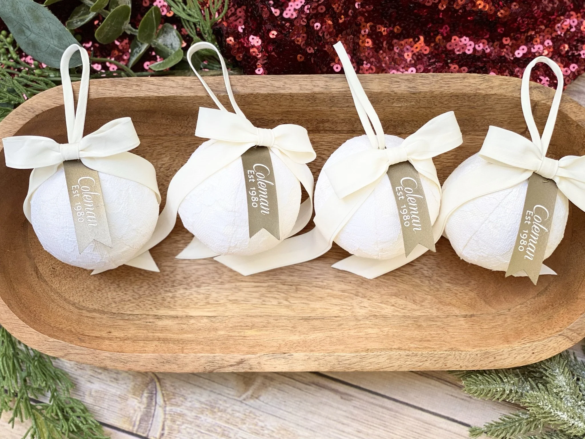 This will be the most special ornament on the tree, complete with a tag to commemorate your wedding day. Be sure to get one for mom and your siblings too!
