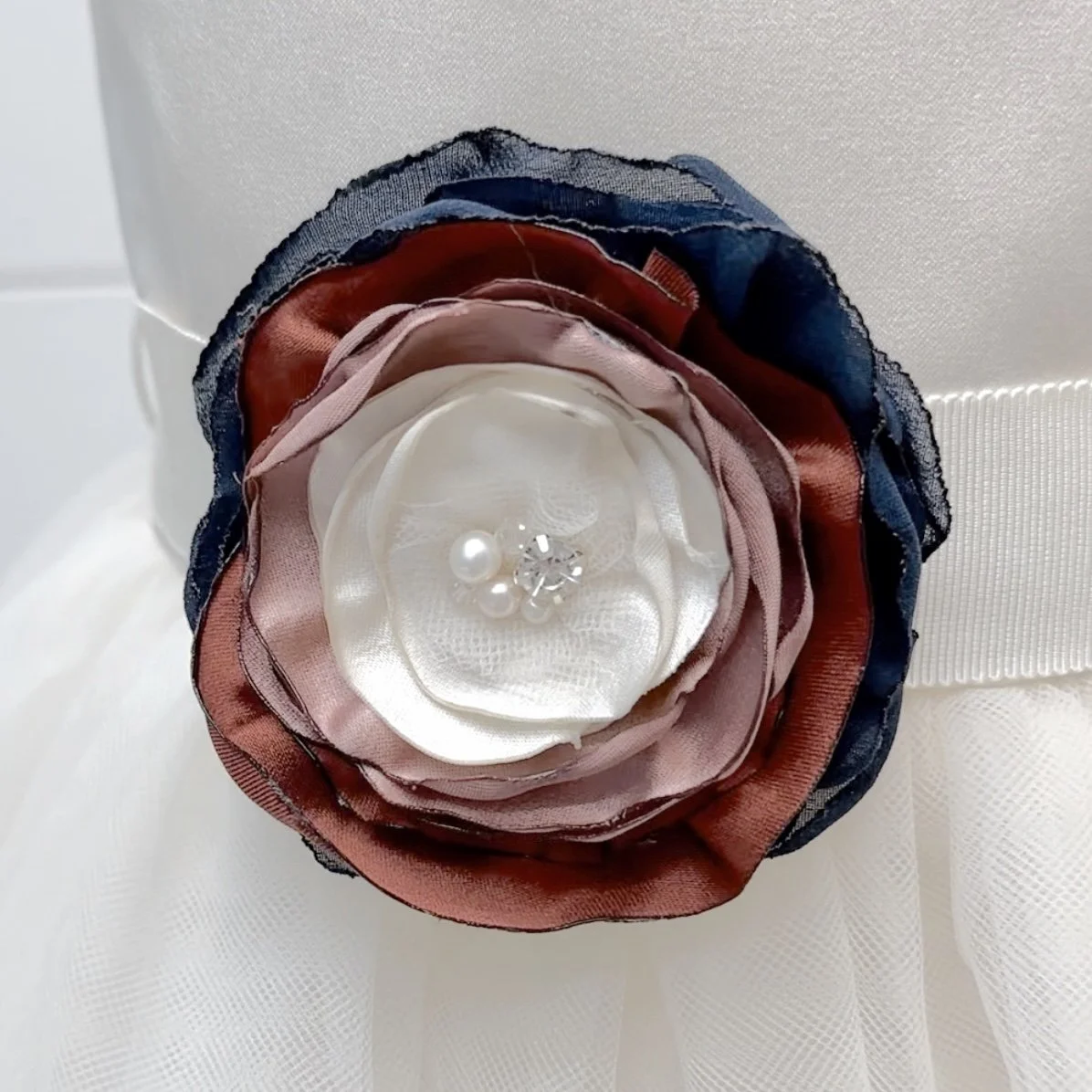 For the littlest of the bridal party. Many brides collect the bridesmaid dress materials to make a custom flower for the flower girl then later use them for their own daughters.
