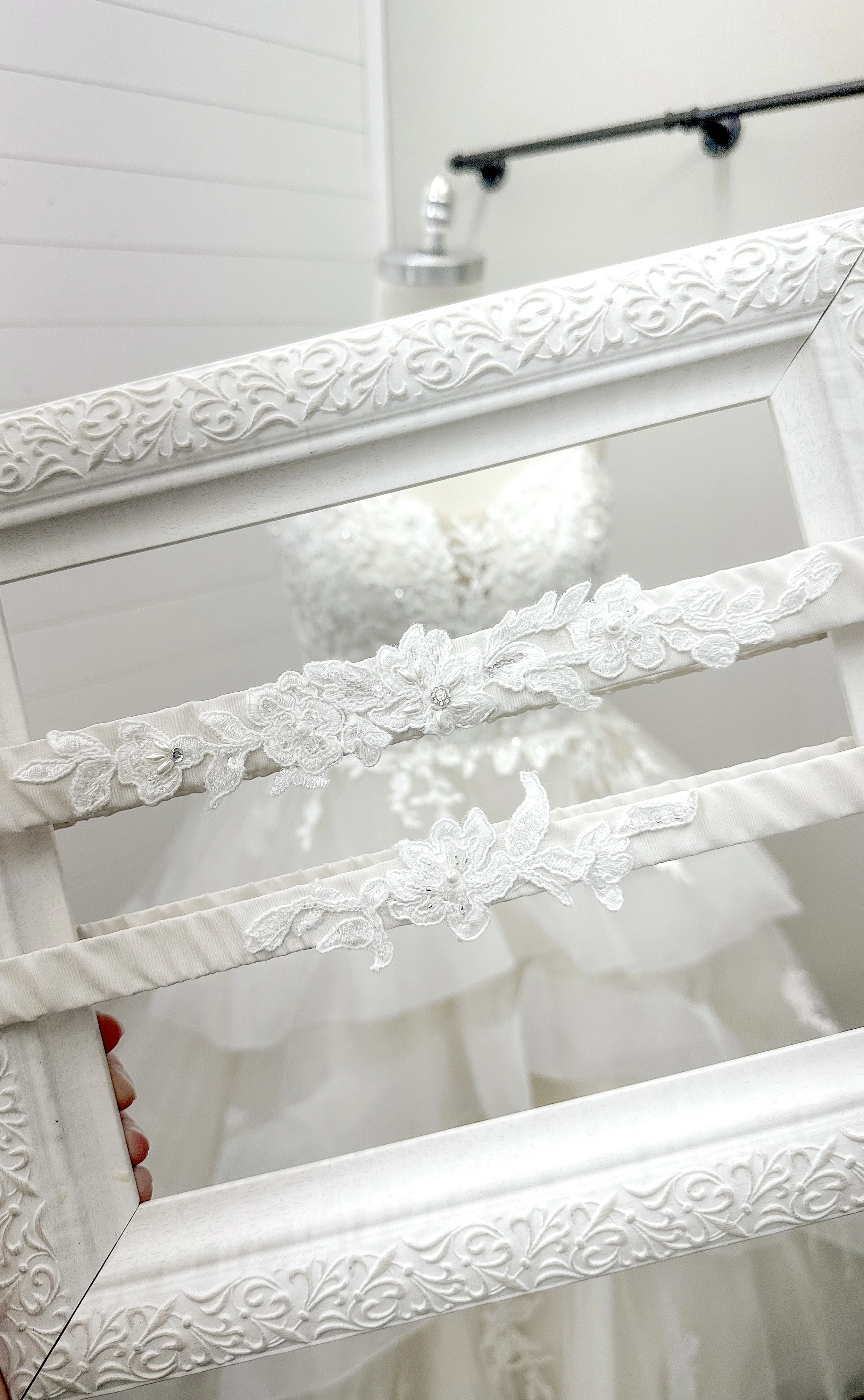 A beautiful, hidden detail. Utilize your favorite pieces of mom’s dress, the hem scraps of your own wedding dress, or a combination of the two! ($75 bridal, $25 toss)